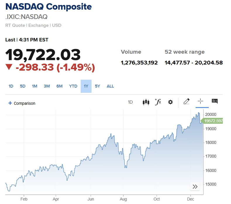 3대 지수는 이달 초 다시 사상 최고치를 경신했지만 이후 한달 간 다우와 나스닥은 서로 다른 길을 걸었다. 12월 나스닥은 테슬라와 알파벳 주가가 급등하고 애플이 상승 랠리를 펼치면서 남은 거래일 동안 큰 하락이 없는 한 2.4% 이상 상승할 것으로 예상된다. 특히 애플은 주가가 꾸준히 오르면서 시가총액이 4조 달러에 가까워졌다.
