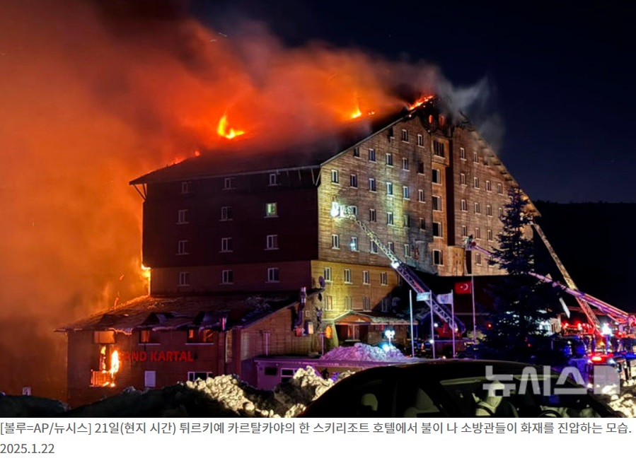 화재는 이날 오전 3시30분쯤 튀르키예 서북부 볼루주(州) 카르탈카야 소재 그랜드카르탈 호텔 내 식당에서 발생했다.