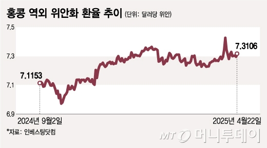 홍콩 역외 위안화(CNH) 시장에서 위안화 조달금리가 2013년 이래 최저치로 하락하면서 약달러 추세에도 위안화 절하 압력이 가중되고 있다. 중국 인민은행이 미국 관세 영향을 상쇄하기 위해 위안화 약세를 방치하고 있다는 해석이 나온다.