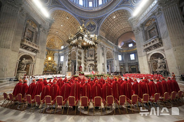 ![교황청은 지난 5일(현지 시간) 차기 교황을 뽑는 콘클라베에 참석하는 추기경 선거인단 133명 전원이 바티칸에 도착했다고 밝혔다. 사진은 지난달 30일 바티칸의 성 베드로 대성당에서 프란치스코 교황의 추모 미사에 참석한 추기경들의 모습. /[바티칸시티=AP/뉴시스]](https://thumb.mt.co.kr/cdn-cgi/image/f=avif/21/2025/05/2025050706090393718_1.jpg)