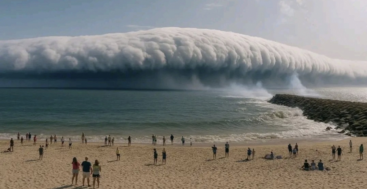 최고 기온이 46.6도까지 오르며 역대급 폭염을 기록 중인 포르투갈에서 쓰나미처럼 보이는 희귀한 구름이 포착됐다.