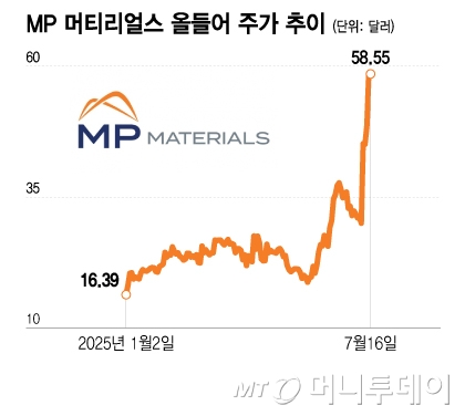 MP는 중국이 미국과 무역 갈등을 이유로 미국에 대한 희토류 수출을 제한하겠다고 위협하자 미국 내 생산 확대에 대한 기대감이 커지며 올들어 주가가 급등세를 탔다. 미국 국방부의 투자는 이 같은 주가 랠리를 더욱 촉진시켰다. 지난 15일에는 애플이 MP와 5억달러 규모의 희토류 자석 구매 계약을 체결했다.