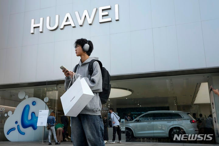 ![[베이징=AP/뉴시스]베이징 화웨이 매장 앞에 한 남성이 화웨이 신제품을 구입하고 서있는 모습.](https://thumb.mt.co.kr/cdn-cgi/image/f=avif/21/2025/09/2025093017560736979_1.jpg)