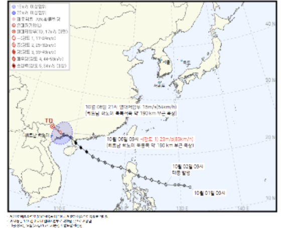 기상청에 따르면 마트모는 소형 태풍으로 반경 250km, 풍속 23m/s를 기록 중이다.