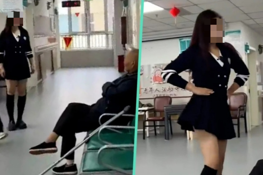 중국의 한 요양원에서 짧은 치마를 입고 노인 앞에서 춤추는 여직원 영상을 공개해 논란이다. 요양원 측은 "약 먹는 것을 독려하기 위한 것"이라고 해명했다.