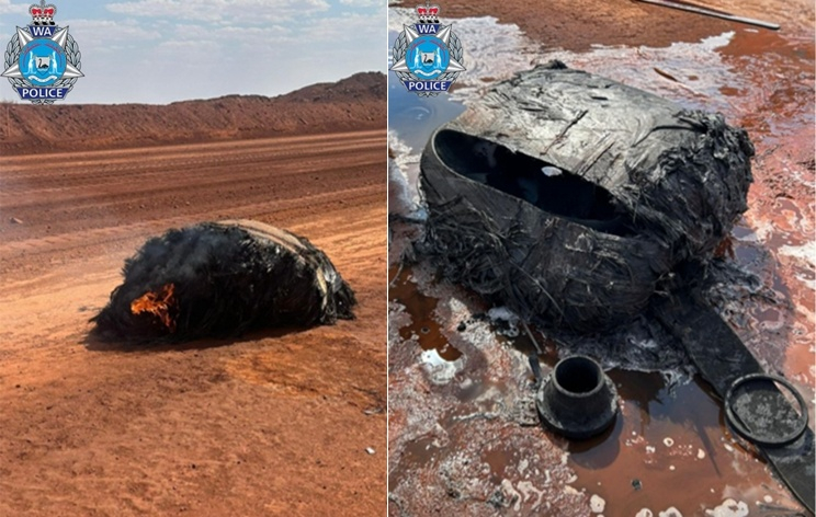 20일 가디언 등에 따르면 지난 18일 오후 2시쯤(현지시간) 서호주 광산 마을인 뉴먼 광부들은 약 30㎞ 떨어진 필바라 사막 한 도로에서 의문의 물체가 불이 붙은 채 떨어져 있는 것을 발견해 소방 당국에 신고했다.