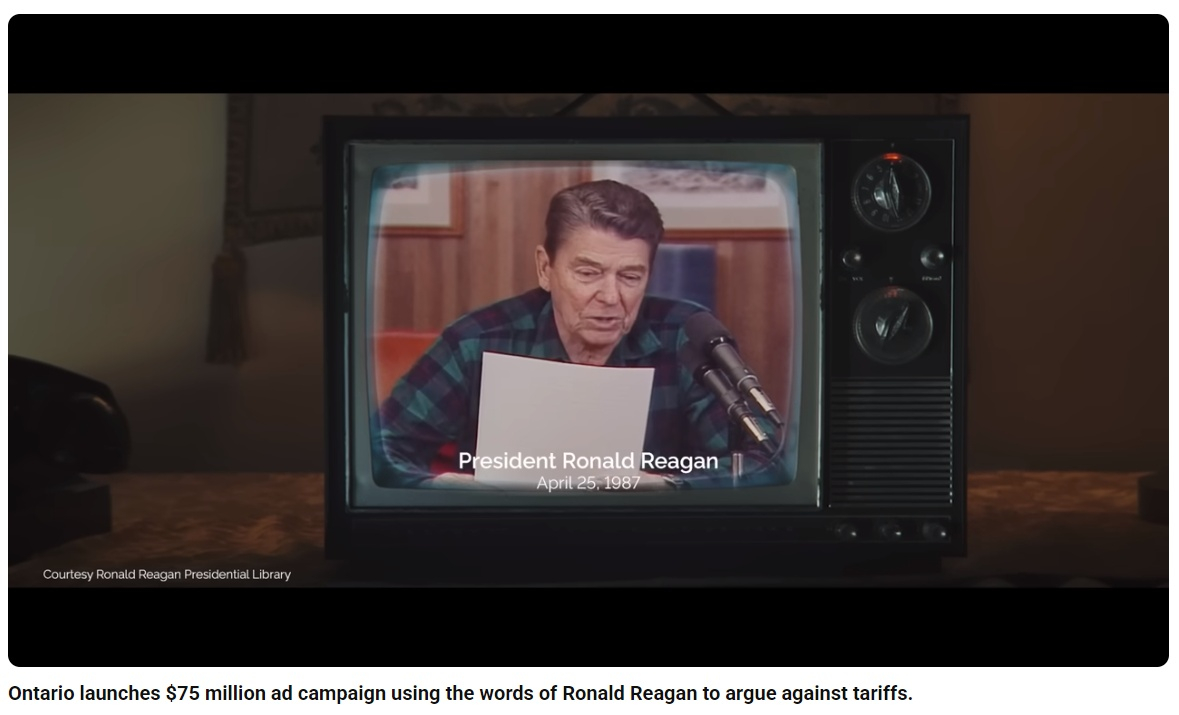 레이건 재단은 해당 공지에서 "캐나다 온타리오주 정부가 1987년 4월25일자 레이건 전 대통령의 '자유롭고 공정한 무역에 관한 국민 라디오 연설' 중 일부 영상과 음성을 선별적으로 사용해 광고를 제작했다"며 "해당 광고는 대통령의 연설을 왜곡하고 있고, 온타리오주 정부는 이 영상을 사용하고 편집하는 데 허가를 구하거나받지 않았다"고 밝혔다. 그러면서 "재단은 이 문제에 관한 법적 대응을 검토하고 있다"고 덧붙였다.