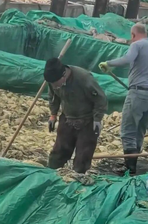 중국의 한 절임배추 공장에서 작업자가 담배를 피우고 침을 뱉는 장면이 포착돼 공분을 사고 있다.