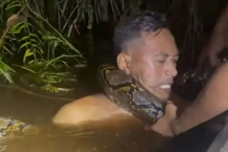 남성은 필사적으로 몸부림쳤고, 주변에 있던 동료들은 물에 뛰어들어 뱀의 머리와 꼬리를 붙잡고 남성에게서 떼어냈다. 처절한 사투 끝에 남성은 간신히 뱀으로부터 벗어날 수 있었다.
