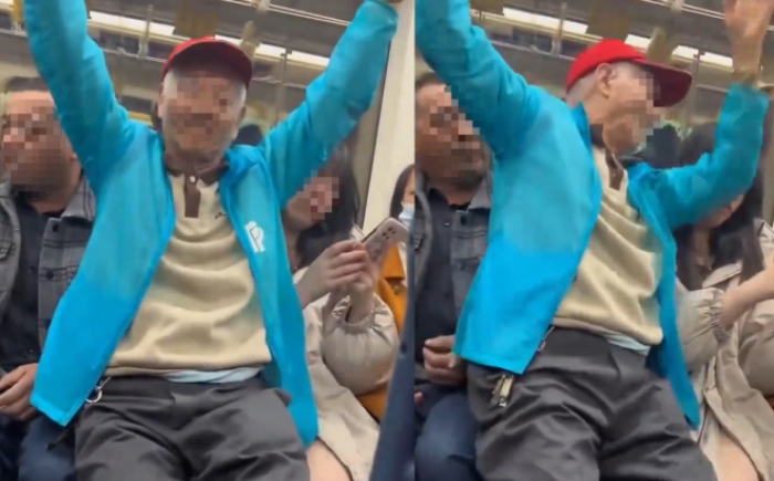 상하이 지하철 9호선 열차에서 한 노인이 좌석에 앉은 여성에게 자리를 양보해달라고 요구했다. 여성이 거절하자, 노인은 여성과 여성 옆자리 승객의 무릎에 걸터앉더니 양손으로 손잡이를 잡고 몸을 뒤로 젖혔다.