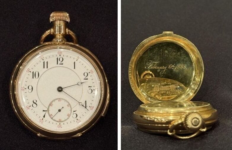 시계는 덴마크 브랜드 '율스 위르겐센'이 제작한 18K 금제 회중시계다. 시계 뚜껑 안쪽에는 '1888년, 2월 6일'과 이니셜 'IS'가 새겨져 있어 1888년 스트라우스의 43번째 생일에 아내가 선물한 것으로 추정된다. 스트라우스는 사고 당시까지 20년 넘게 해당 시계를 가지고 다녔다고 한다.
