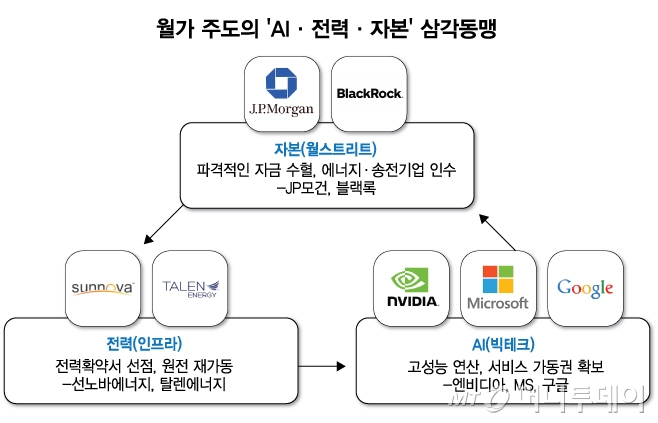 자본이 전력을 선점하고 전력이 AI 가동권을 부여하며 AI가 다시 자본을 벌어들이는 구조. 월가 주도의 'AI-전력-자본 삼각 동맹'은 이미 완성 단계다.