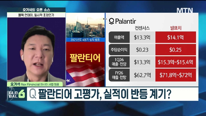 이혜림 앵커와 오기석 Rex Financial 아시아 사업 대표가 워시 폭락 후 시장 변동성, 빅테크 실적, AI 투자 확대, 엔비디아 중심의 메가캡 옵션, 팔란티어 실적 등에 대해 논의했습니다.