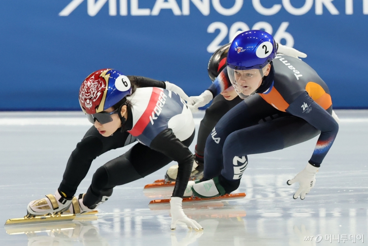 쇼트트랙 김길리가 16일(현지시간) 이탈리아 밀라노 아이스스케이팅 아레나에서 열린 2026 밀라노·코르티나담페초 동계올림픽 쇼트트랙 여자 1000m 준결승에서 질주하고 있다. /사진=뉴스1