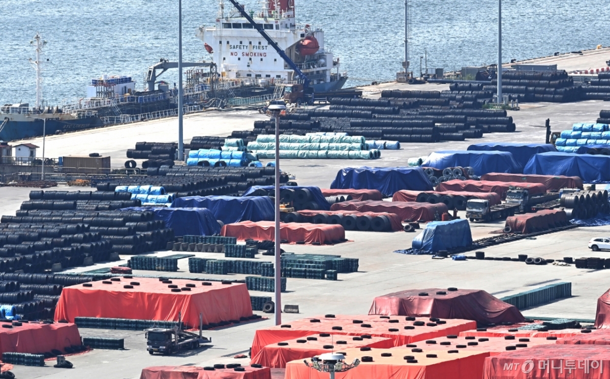 ![[평택=뉴시스] 김종택 기자 = 18일 경기 평택시 포승읍 평택항 야적장에 철강제품이 쌓여 있다. 미국 도널드 트럼프 행정부는 수입산 철강과 알루미늄 제품에 부과하는 50% 품목관세 적용 범위를 407종의 파생상품으로 확대하면서 국내 관련 산업의 피해가 우려된다. 이번에 추가된 제품은 기계류 및 부품, 자동차 부품, 전자기기 부품 등이다. 이번 조치는 미국 동부 표준시 기준 18일 0시 1분 이후 미국에 수입 통관되거나, 보세 창고에서 반출한 통관 물량부터 적용된다. 2025.08.18./사진=김종택](https://thumb.mt.co.kr/cdn-cgi/image/f=avif/21/2026/02/2026021813565496419_1.jpg)