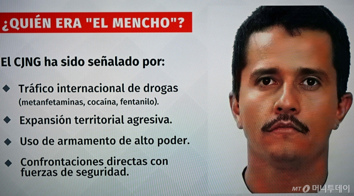 블룸버그, 워싱턴포스트(WP) 등 보도에 따르면 멕시코 국방부는 멕시코 할리스코 주에 기반을 둔 '할리스코 신세대 카르텔'(CJNG) 두목 네메시오 루벤 오세게라 세르반테스를 카르텔 소탕 작전 과정에서 사살했다고 23일 밝혔다. 그는 '엘 멘초'라는 별명을 갖고 있었다.