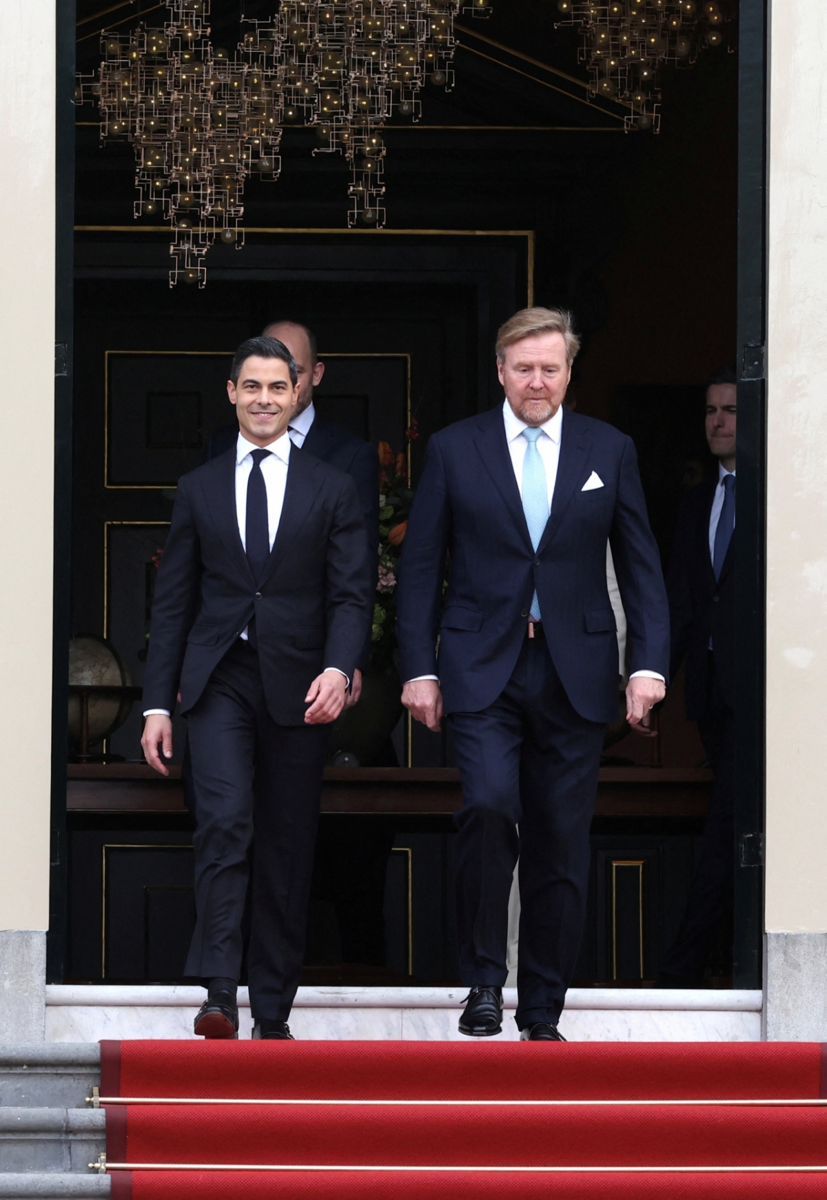 23일(현지시간) 빌럼 알렉산더 네덜란드 국왕이 네덜란드 헤이그의 하우스 텐 보스 궁전에서 신임 네덜란드 총리 롭 예턴(Rob Jetten) 및 신임 내각 구성원들과 함께 걷는 모습/사진=로이터