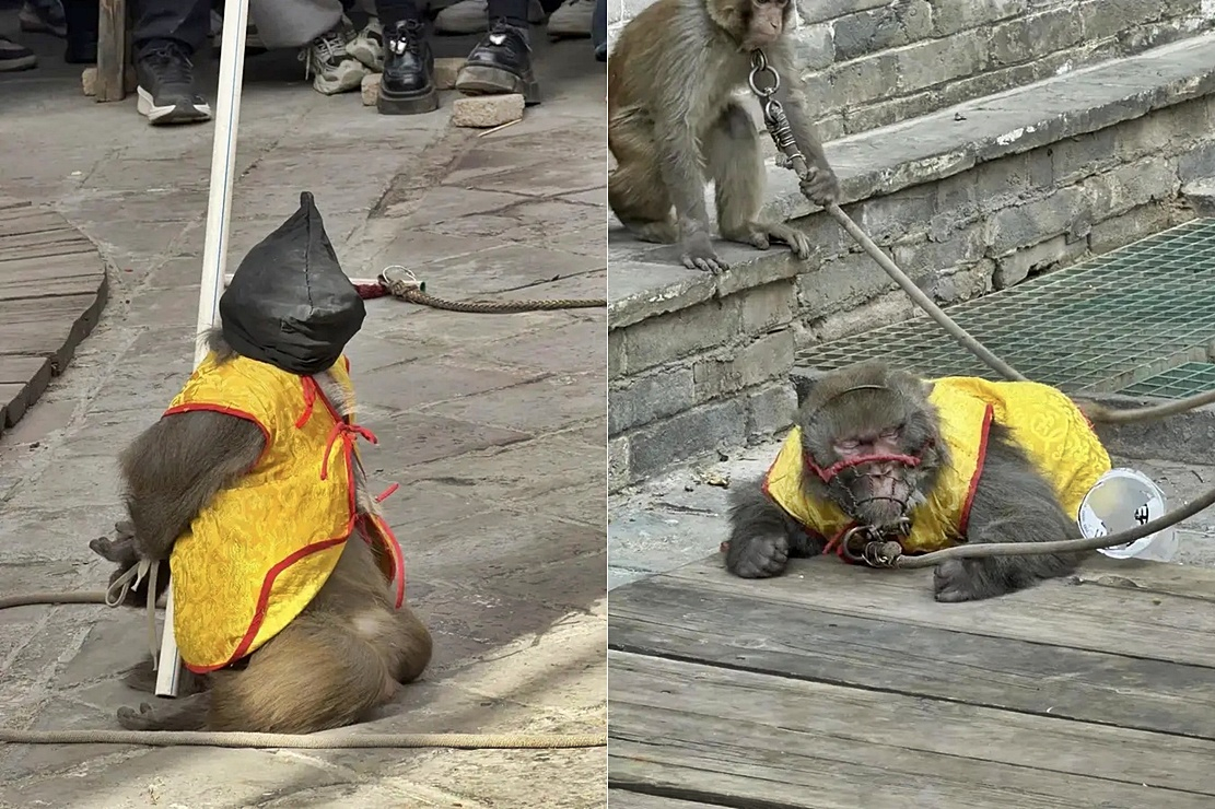 26일 홍콩 성도일보 등에 따르면 허베이성 스자좡시에 있는 관광지에서 진행된 원숭이 공연 영상이 최근 SNS(소셜미디어)를 중심으로 확산했다.
