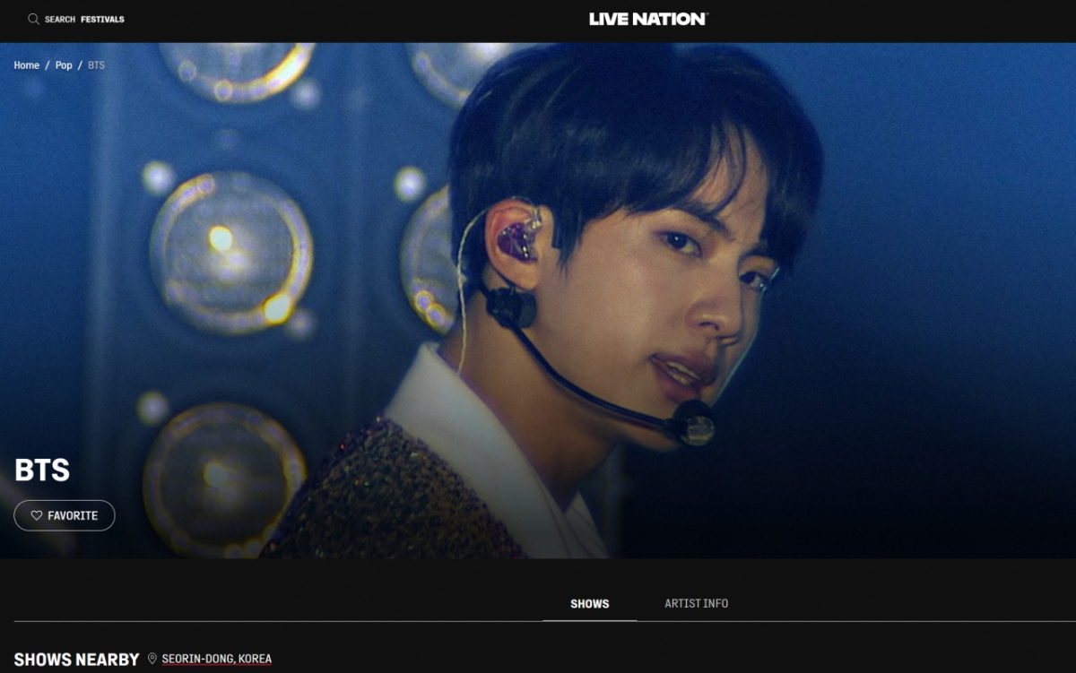 방탄소년단(BTS)이 2020년 이후 약 6년 만에 정규 5집 '아리랑' 을 발매하고 대규모 월드투어에 나선다. 투어의 기획·운영 및 티켓 판매를 전담하는 기업은 라이브 네이션(Live Nation)이다. 라이브 네이션은 전 세계 51개국 사무소, 460개 공연장의 소유권 및 독점 예약권을 기반으로 BTS 월드투어에 필요한 모든 서비스를 제공한다. 자회사 티켓마스터(Ticketmaster)를 통한 사전 예매 관리부터 현장 운영, 광고·홍보까지 도맡는 구조다.