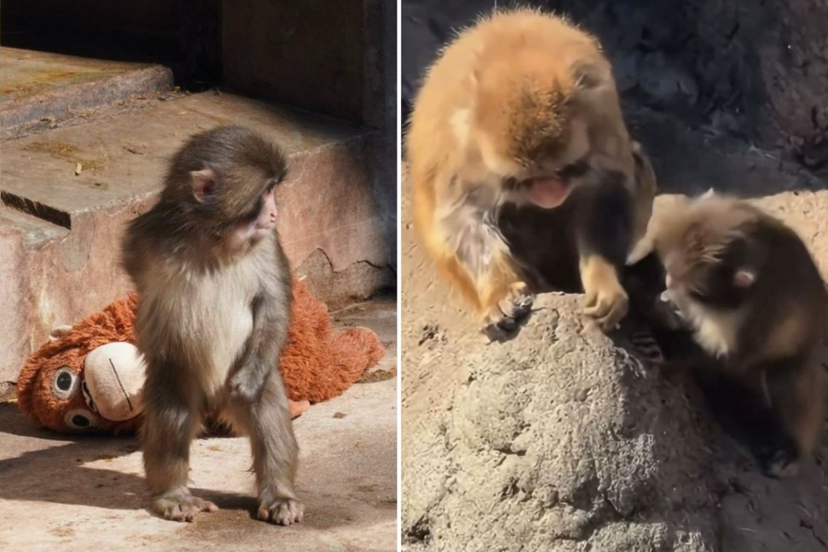 SNS(소셜미디어)에 공개된 영상에는 두 원숭이가 서로를 쫓아다니며 뛰놀고 껴안거나 가까이 붙어 있는 장면이 담겼다. 과거 봉제인형에게만 의지하던 펀치에 친구가 생긴 것.