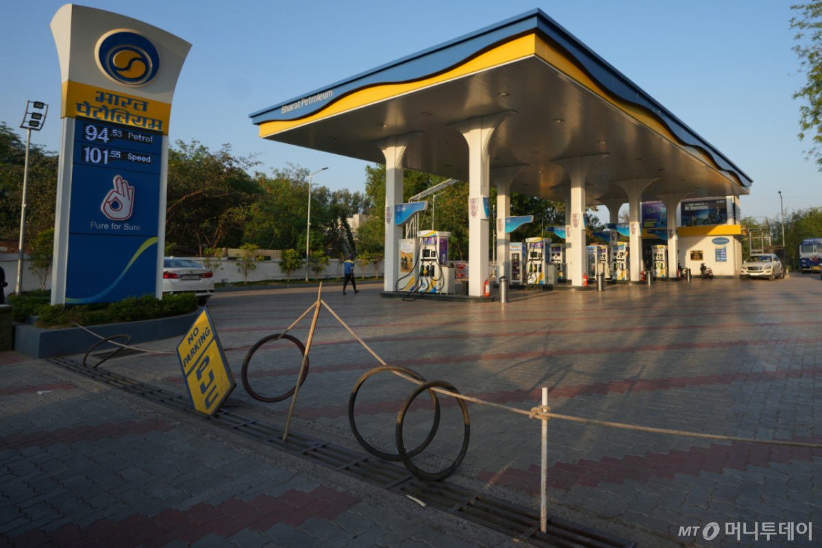 23일(현지 시간) 인도 아마다바드의 한 주유소가 연료 부족으로 영업하지 못해 텅 비어 있다. /사진=뉴시스