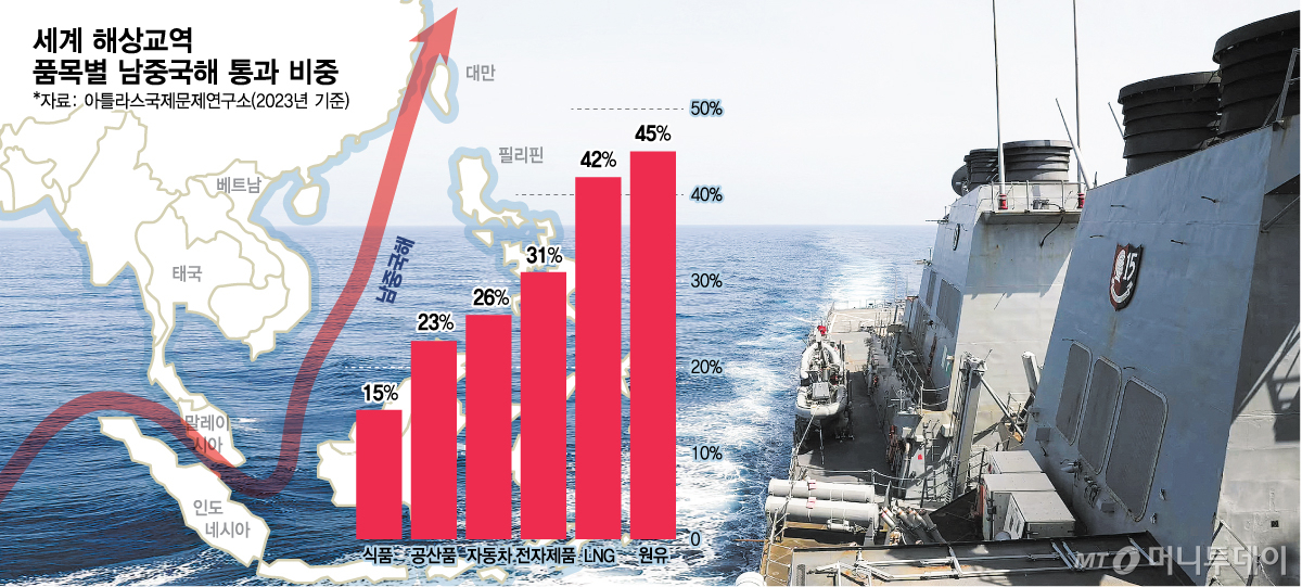 전문가들은 남중국해 갈등이 세계질서 재편의 다음 분기점이 될 것이라 예상한다. 제2의 호르무즈해협은 말레이반도와 수마트라섬(인도네시아) 사이 말라카해협, 중국 본토와 대만 사이 대만해협이 될 공산이 크다. 전략국제문제연구소(CSIS) 같은 싱크탱크를 비롯해 전문가들은 수년 전부터 중국이 대만해협과 남중국해 일대를 봉쇄할 가능성을 연구했다. 남중국해는 전세계 원유 해상운송량의 45%, 전자제품의 31%가 지날 정도로 역할이 크다. 이곳이 막히면 대만 TSMC가 생산하는 반도체의 글로벌 공급이 중단되고 인도양과 동남아시아에서 한국과 일본으로 향하는 무역로가 직접 위협받게 된다.