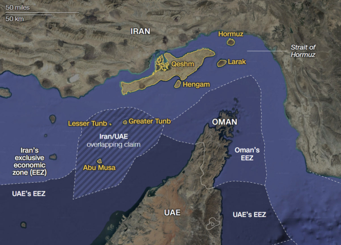 특히 아부무사섬과 대툰브섬, 소툰브섬은 해협통제의 핵심거점으로 지목된다. 대형 군함과 유조선의 경우 반드시 이 구간을 통과해야 하기 때문이다.