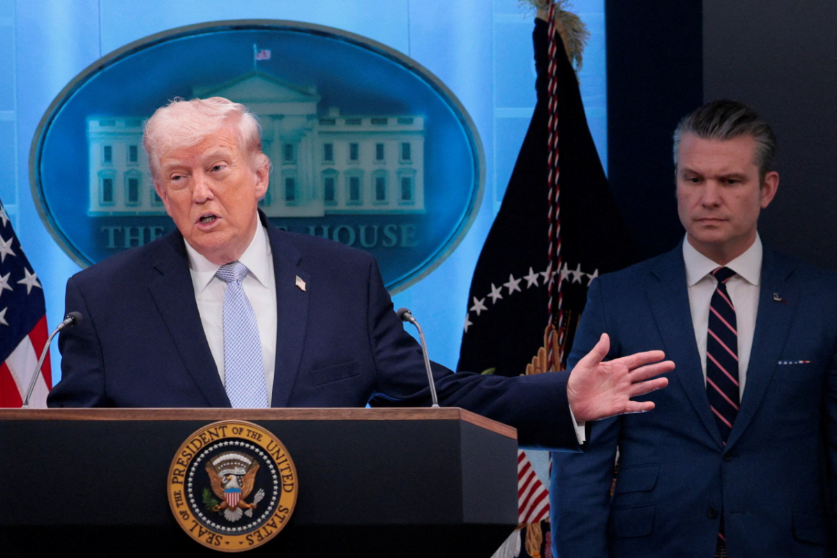 이날 회견에 배석한 피트 헤그세스 국방장관은 "대통령의 지시에 따라 오늘 작전 개시 이후 가장 많은 양의 타격이 이뤄질 것이고 내일은 오늘보다 더 많은 공격이 이뤄질 것"이라며 "이란은 선택해야 한다. 트럼프 대통령은 장난치지 않는다"고 말했다.