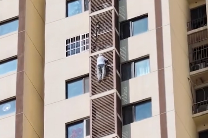9일(이하 현지시간) 홍콩 SCMP(사우스차이나모닝포스트)에 따르면 지난 1일 오후 1시42분쯤 백발의 한 할머니가 중국 베이징 스징산구의 한 아파트 외벽을 타고 내려오는 모습이 목격됐다.