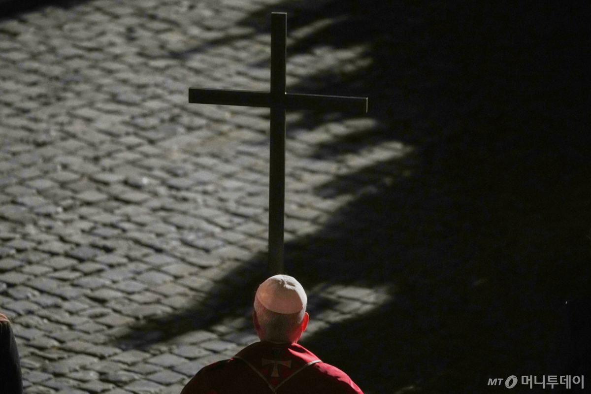 ![[로마=AP/뉴시스] 교황 레오 14세가 3일(현지 시간) 이탈리아 로마 콜로세움에서 열린 성금요일 ‘십자가의 길’(비아 크루치스) 행렬에 참석해 길이 1.5m의 경량 나무 십자가를 들고 행진하고 있다. 이 행렬은 예수가 예루살렘 갈바리 언덕에서 십자가형을 당하기까지의 길을 상징적으로 재현한 것이다. 2026.04.04. /사진=민경찬](https://thumb.mt.co.kr/cdn-cgi/image/f=avif/21/2026/04/2026041308451017058_4.jpg)