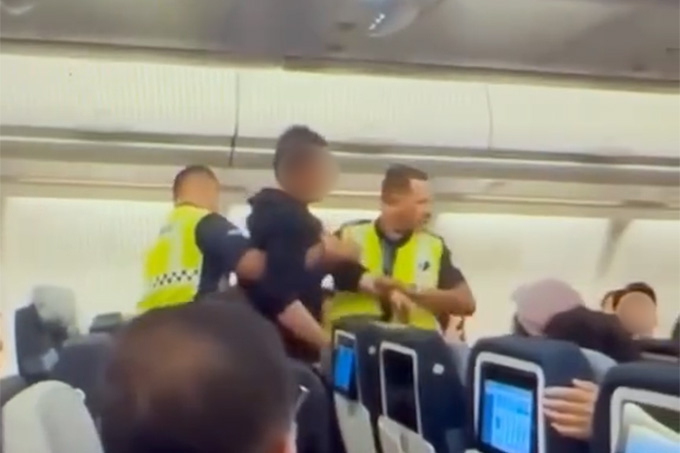 승무원 신고를 받고 항공기에 탑승한 보안요원들이 해당 남성을 끌어내리려 했으나, 그는 이에 순응하지 않고 저항해 한동안 실랑이를 벌였다. 하지만 결국 기내에서 쫓겨났다.