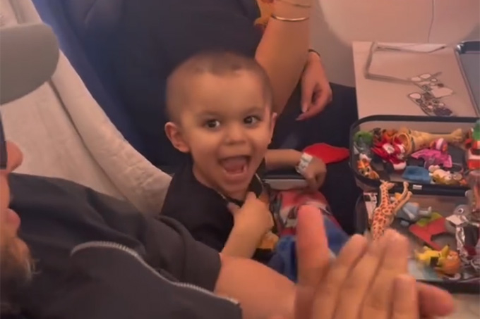 승무원은 "오늘 우리 항공기에 아주 특별한 승객이 탑승했습니다. 크루즈라는 2살 난 어린 영웅입니다. 그는 매우 희귀한 암과 싸워왔는데, 이제 공식적으로 완치되었습니다"라고 알렸다.