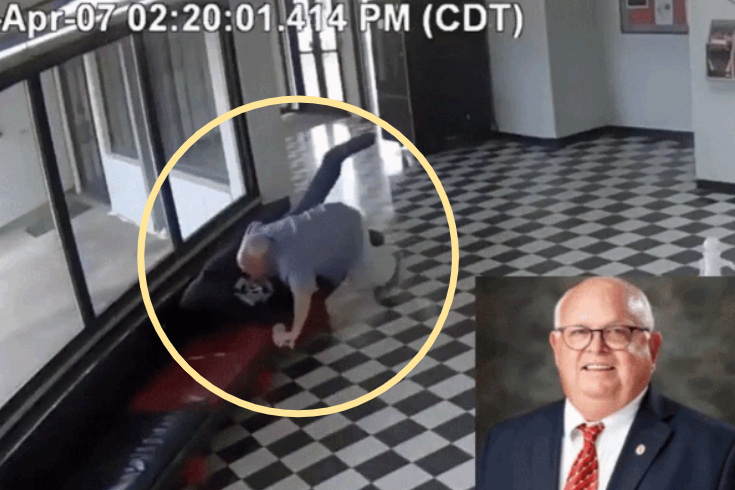 미국 한 고등학교에서 교장이 총기를 들고 무단 침입한 괴한을 태클로 제압하는 영상이 공개됐다.