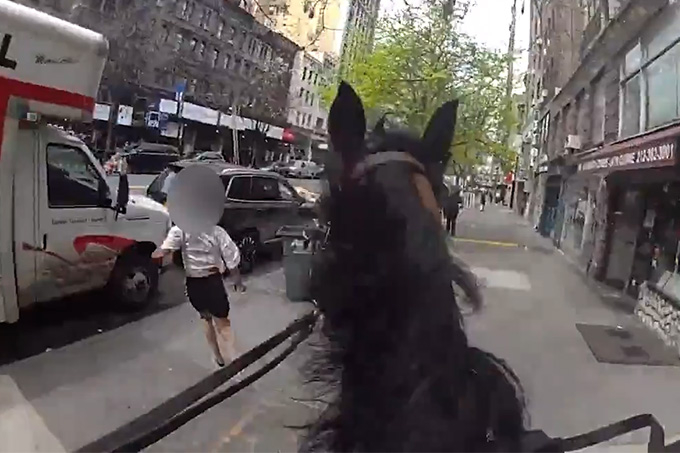 미국 뉴욕 맨해튼에서 기마경찰이 지갑 절도 후 도망치던 소매치기를 추격해 체포했다.