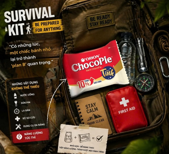 이에 오리온 베트남 법인은 공식 SNS(소셜미디어)를 통해 "때로는 작은 과자가 플랜 B가 될 수 있다"는 문구와 함께 초코파이가 포함된 생존 키트에 사진을 첨부했다.
