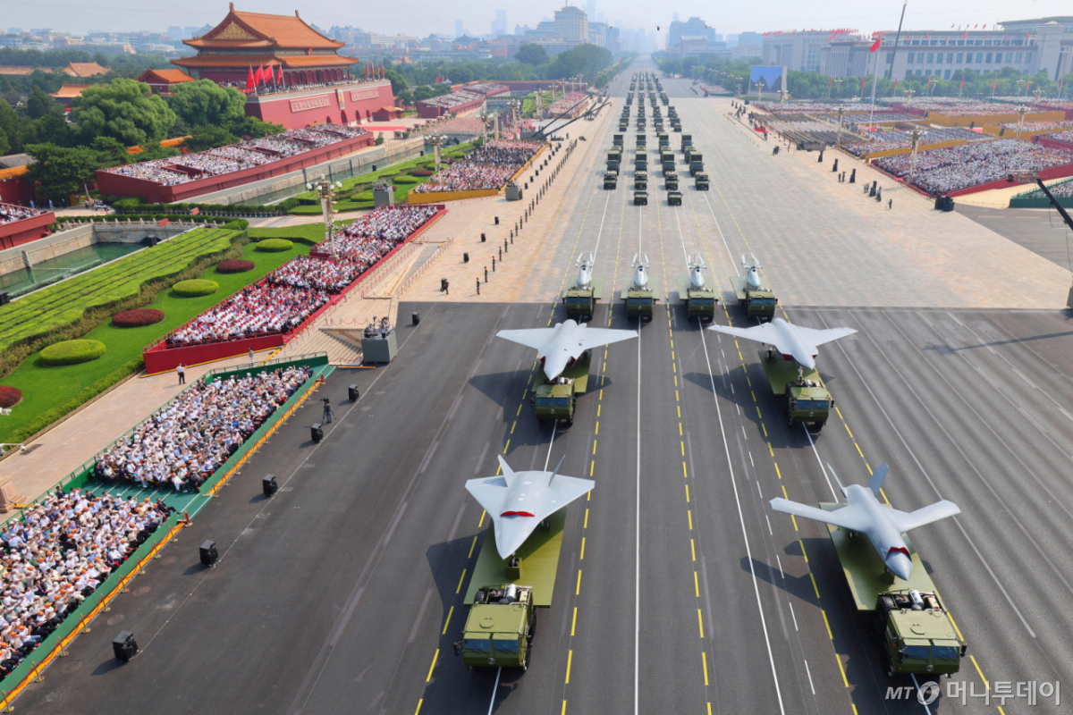 ![[베이징=AP/뉴시스]9월3일 베이징 톈안먼(天安門) 광장에서 열린 2차 세계대전 종전 80주년 기념 열병식에서 드론과 기타 군사장비들을 실은 차량 대형이 지나가고 있다. 영국 런던의 왕립합동군사연구소(RUSI)가 해커 그룹 '블랙문'으로부터 입수한 러시아 문서를 분석한 결과 러시아가 중국이 대만 공습에 도움이 될 수 있는 군사 장비와 기술을 중국에 판매하고 있는 것으로 드러났다. 2025.09.26. /사진=유세진](https://thumb.mt.co.kr/cdn-cgi/image/f=avif/21/2026/04/2026042713152870723_1.jpg)
