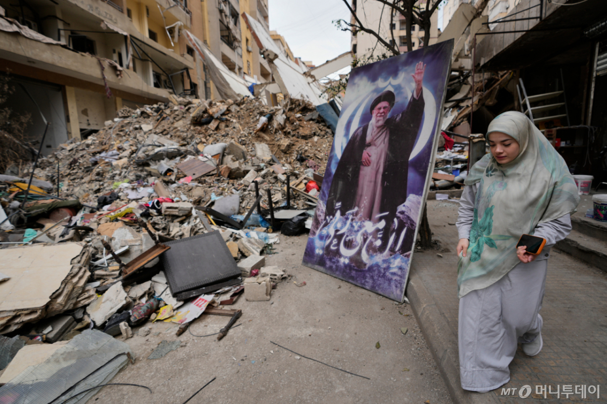 ![[다히예=AP/뉴시스] 20일(현지 시간) 레바논 베이루트 남부 다히예에서 한 여성이 이스라엘의 공습으로 파괴된 건물 앞에 설치된 아야톨라 알리 하메네이 전 이란 최고지도자 포스터 옆을 지나가고 있다. 레바논과 이스라엘은 지난 17일부터 열흘간 임시 휴전 중이다. 2026.04.21. /사진=민경찬](https://thumb.mt.co.kr/cdn-cgi/image/f=avif/21/2026/04/2026042720531641509_1.jpg)