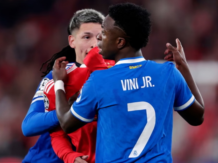 앞서 지난 2월 18일 열린 벤피카와 레알 마드리드의 2025-2026 UEFA 챔피언스리그 녹아웃 라운드 플레이오프 1차전에서 잔루카 프레스티아니(벤피카)가 비니시우스(레알 마드리드)에게 유니폼을 들어 올려 입을 가린 채 말해 논란이 일었다.