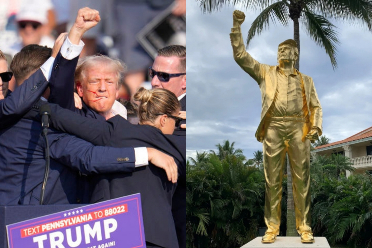 이 동상은 트럼프 대통령이 2024년 대선 유세 당시 펜실베이니아주 버틀러 집회에서 총격당했을 때 취했던 자세를 형상화한 것으로 전해졌다.